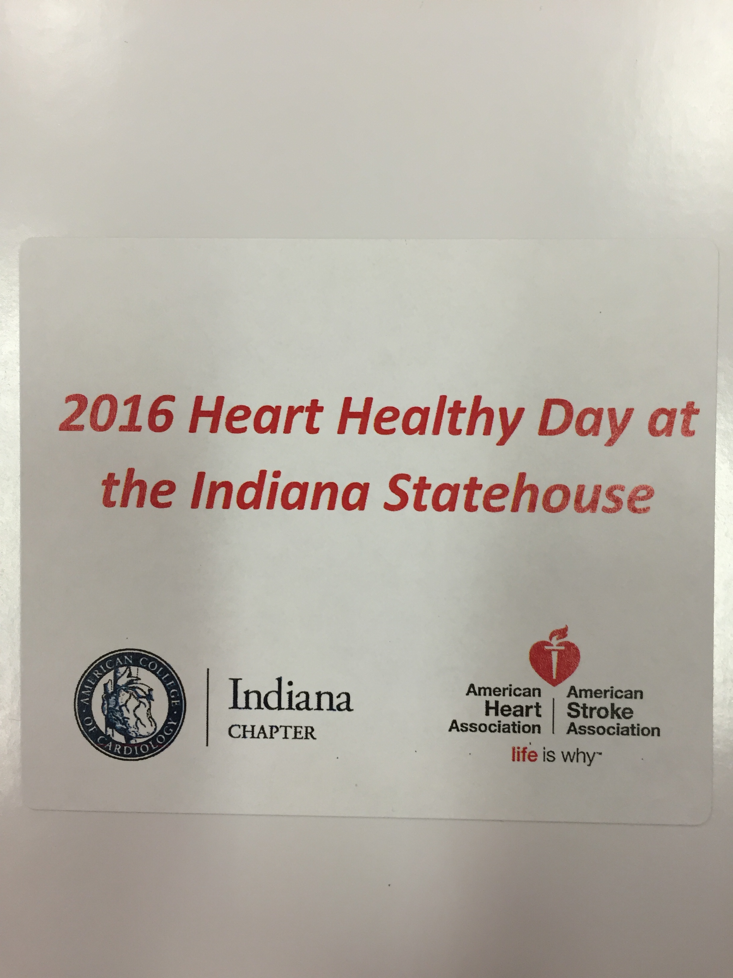 The Indiana-ACC collaborated with the Indiana AHA for Heart Healthy Day at the Statehouse. We discussed the cigarette tax and healthy food.